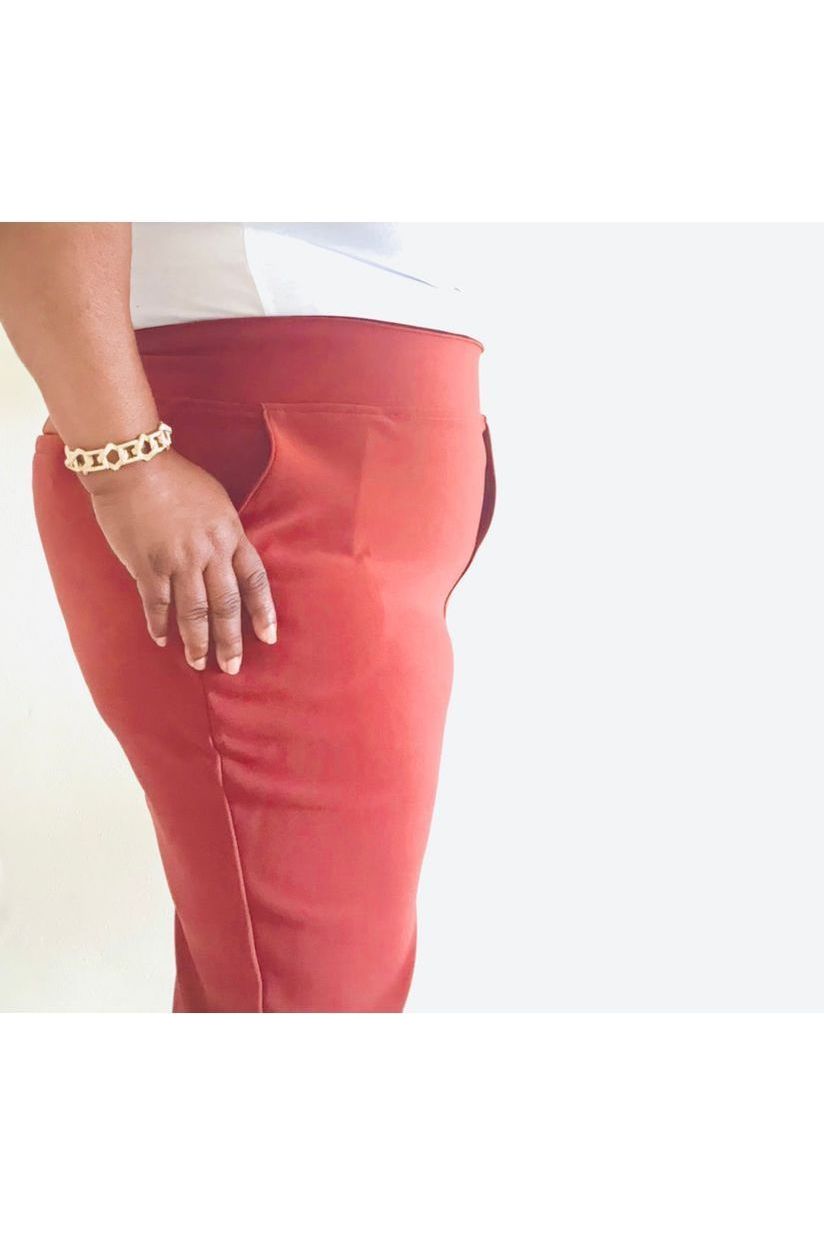 Meet your new go-to dress pants—polished, comfy, and effortlessly stylish. These 7/8 Length Stretch Pull-On Dress Pants are designed for a sleek, put-together look without sacrificing comfort. The heavy stretch fabric moves with you, while the elastic waistband ensures an easy pull-on fit. Featuring four functional pockets, these pants are as practical as they are chic. Perfect for work, casual outings, or dressing up with heels for a night out.